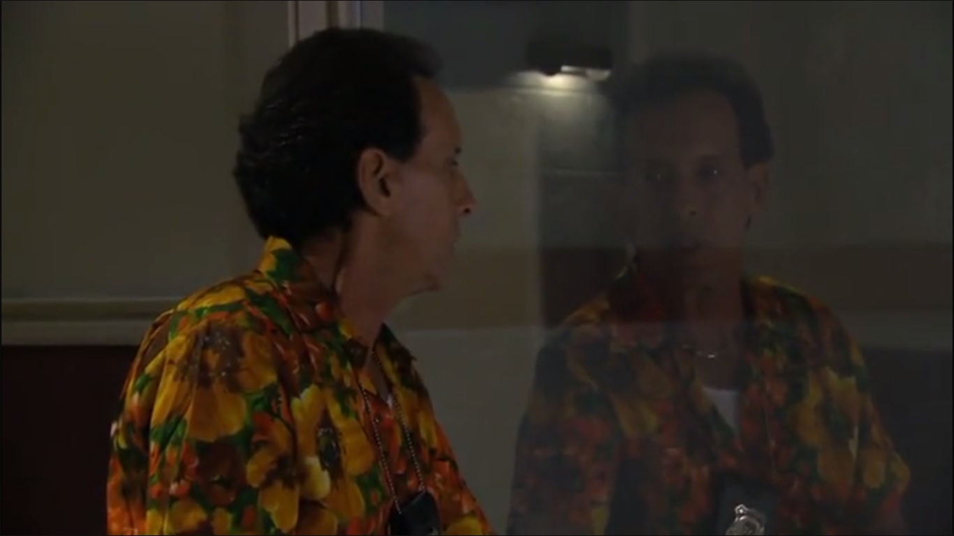 En eso llega un guardia que pone unos documentos cerca del preso.